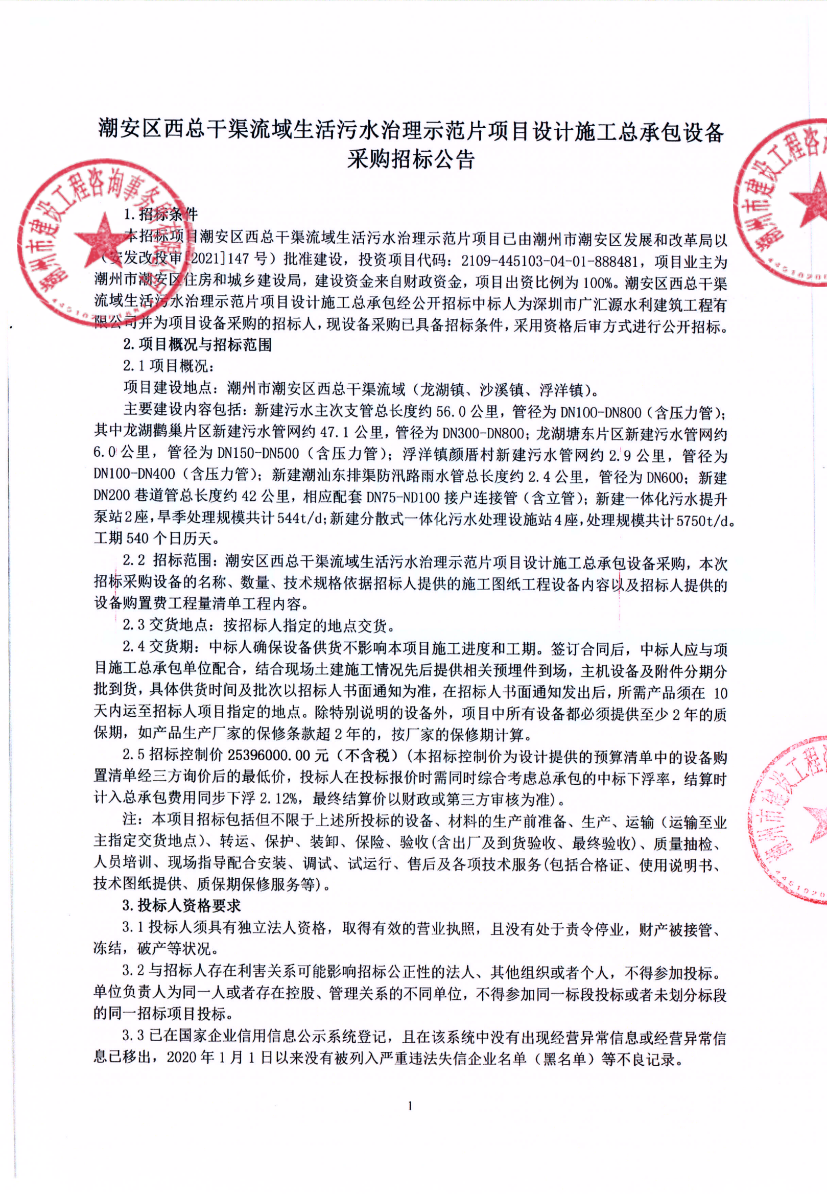 潮安區西總干渠流域生活污水治理示范片項目設計施工總承包設備采購